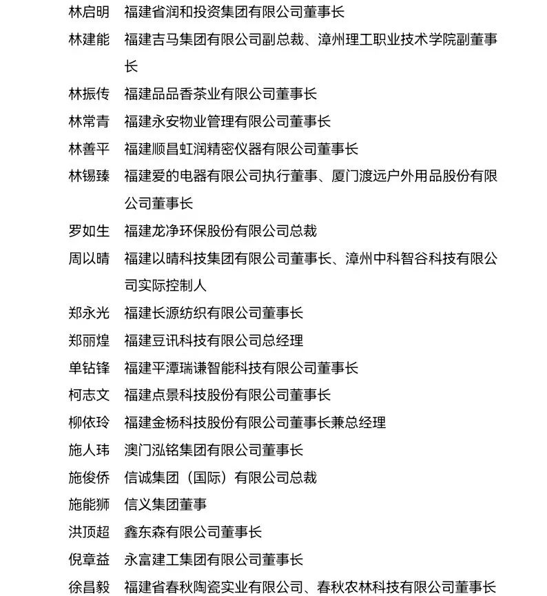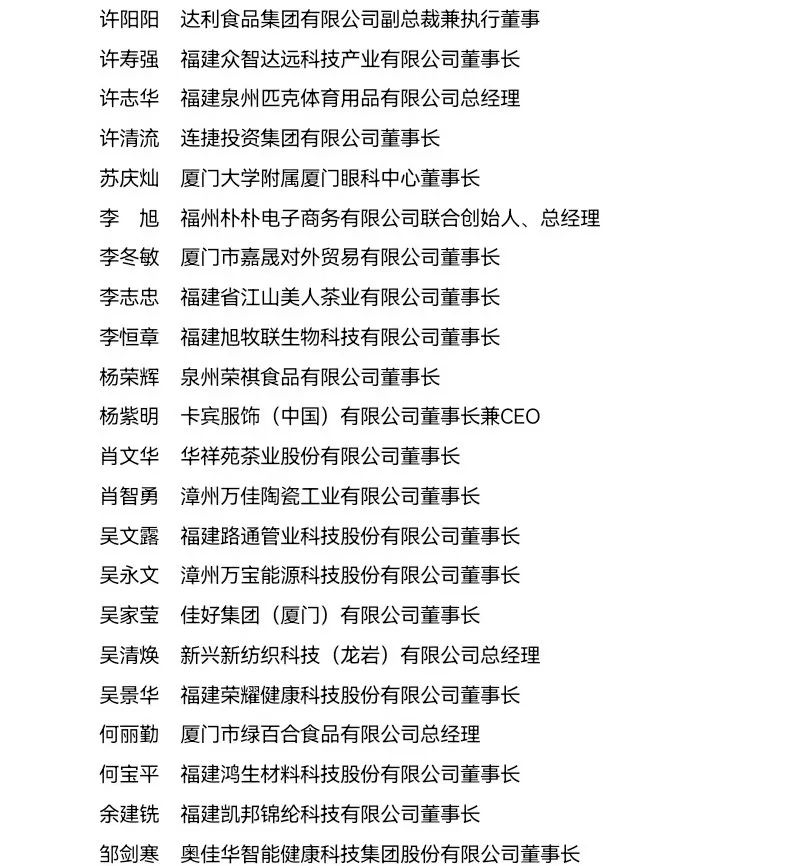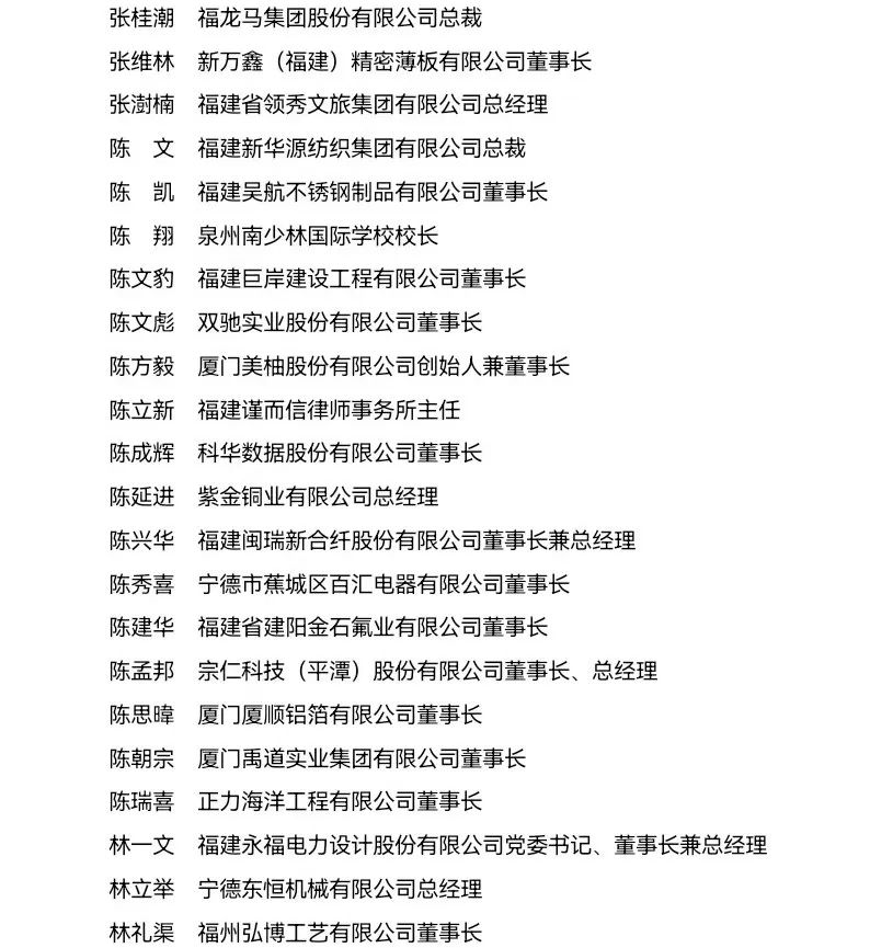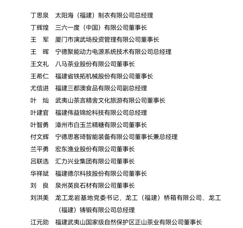 “福建省非公有制經濟優秀建設者”表彰名單