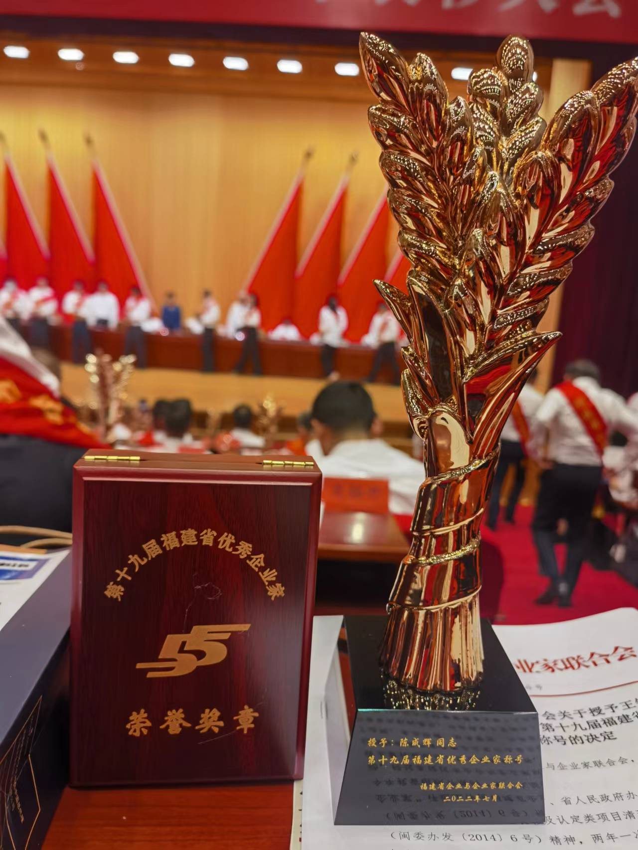 7月(yuè)(yuè)8日上(shàng)午,第十九屆福建省優秀企業家表彰大會作紙在福建會堂召開。會上(shàng),成都新尚網絡科技股份有限公司董事(不下shì)長陳成輝先生(shēng)被授予“福建省優秀企業家”稱好懂号。