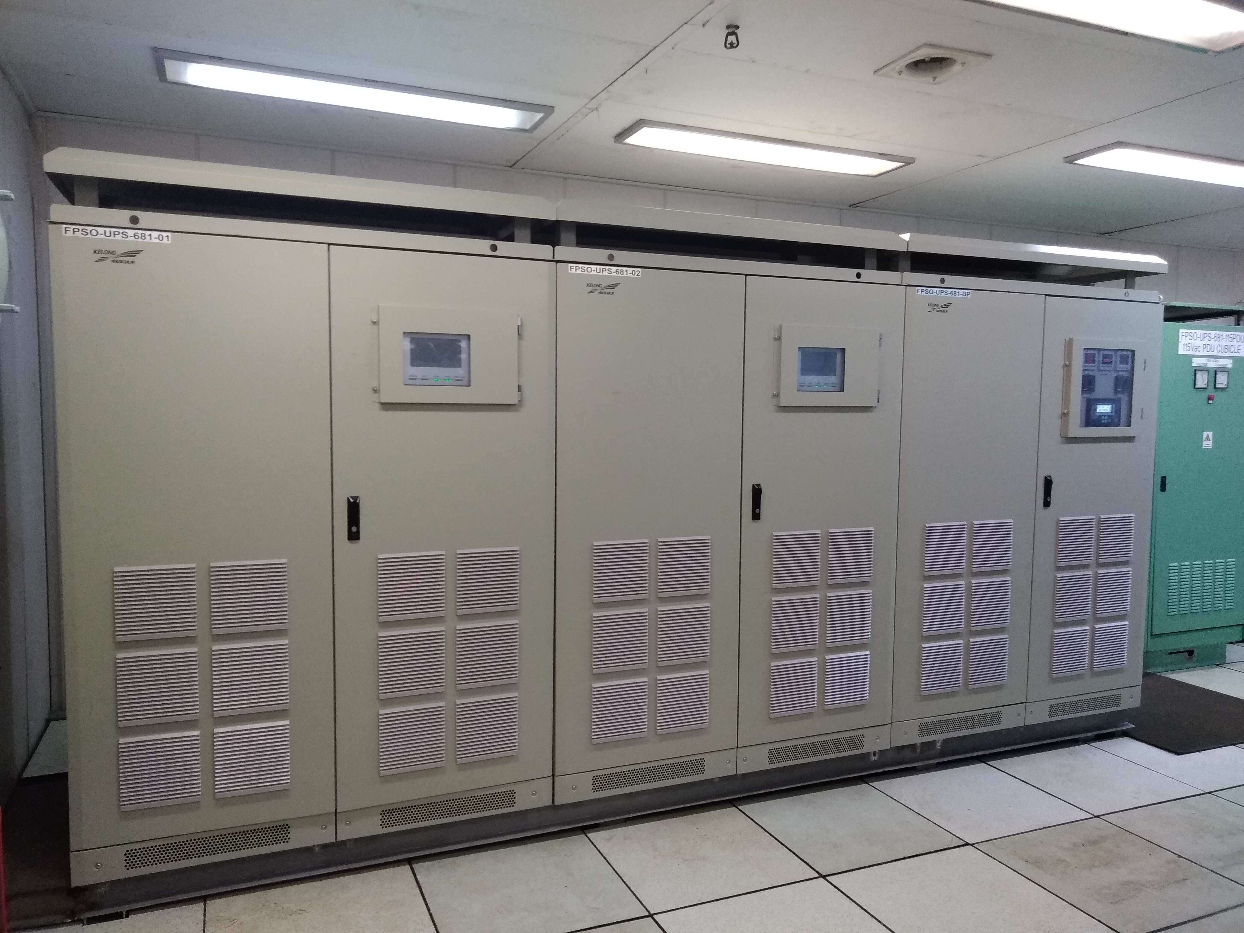 UPS在FPSO的發電機組正常工作(zuò)時(shí)具有穩頻、穩壓和慢房隔離高次諧波幹擾等作(zuò)用,避免由于發電機抖動、感性設備負載啟停造成幹擾請日而使關(guān)鍵設備誤動作(zuò)或損壞。