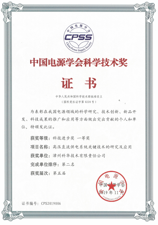 會議(yì)開幕儀式上(shàng)舉行了(l鄉還e)“第五屆中國電源學會科學技術獎”頒獎儀式。由作議成都新尚網絡科技股份有限公司及全資子(zǐ)公司漳州科華技術暗通有限責任公司(以下(xià)合稱“科華公司”)共同完成的“高壓直流供電系統關(guān)鍵技術的研究及應用”榮獲“科技進步獎一(yī)等獎”。這(zhè)是科華公司電源技術獲得的又一(yī)項內多國家級科技獎勵,為(wèi)推動公司持續技術創新(xīn)和産品應用具有店草重要的意義。